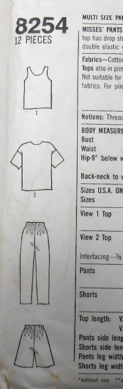 ONLY THE TANK TOP-SHORTS & PANTS PATTERN SUPPLIED
