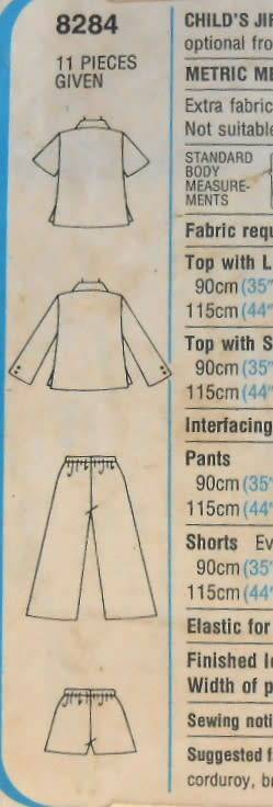 SIMPLICITY 8284 KIDS PANTS-SHORTS-PULLOVER TOP SIZE 3 YEARS CHEST 56 CM COMPLETE SIMPLICITY 8284 KIDS PANTS-SHORTS-PULLOVER TOP SIZE 3 YEARS CHEST 56 CM COMPLETE
