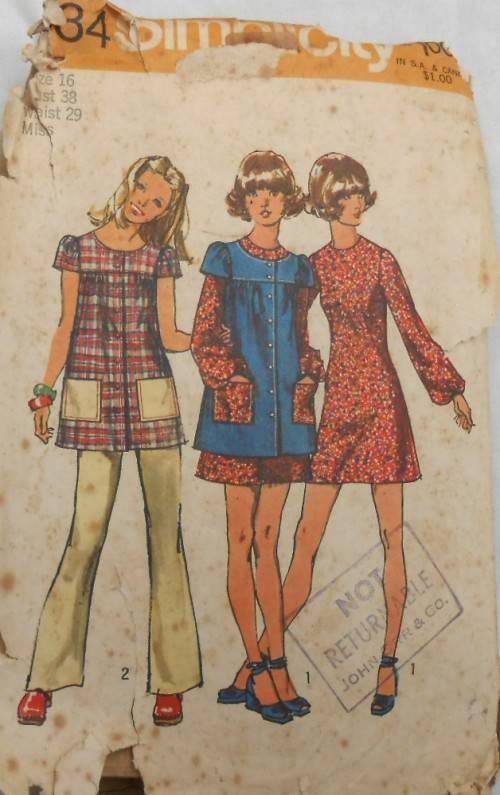 SIMPLICITY 9834 MINI DRESS-SMOCK-PANTS SIZE 16 BUST 38 COMPLETE-ZIPLOC - SEWING PATTERN