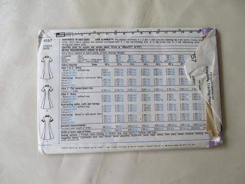 SIMPLICITY - PATTERN NO.6157 - SIZE 10 1/2 & 12 1/2 - BUST 84 & 89 CM FACTORY FOLDED - AS PER SCAN