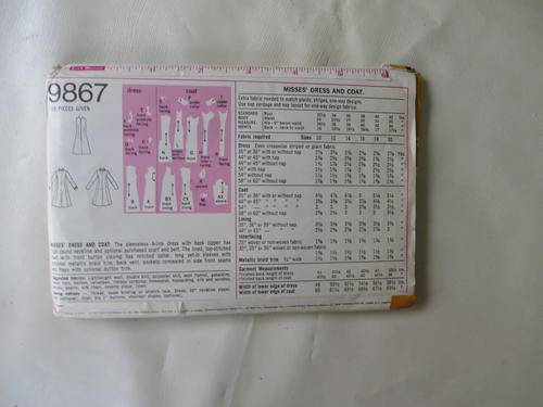 SIMPLICITY - PATTERN NO. 9867 - SIZE 12 - BUST 34- FACTORY FOLDED - AS PER SCAN