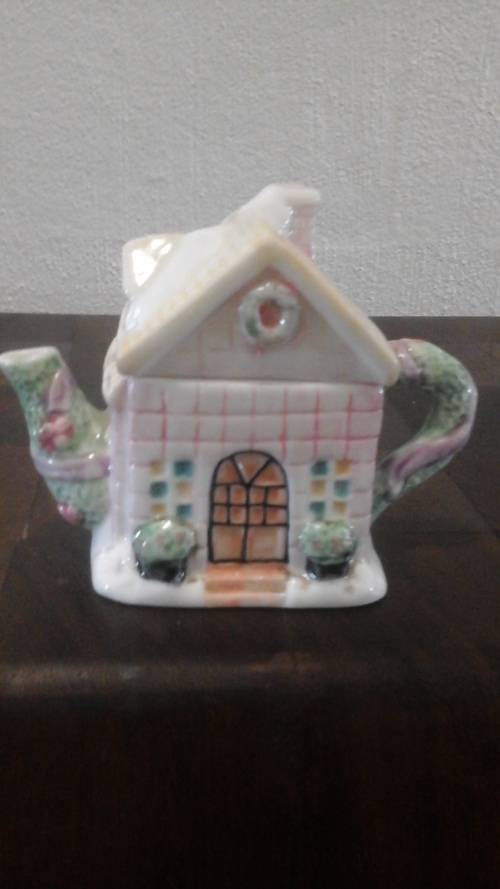 SIMPLY BEAUTIFUL VINTAGE HOUSE SHAPED MINIATURE TEAPOT.
