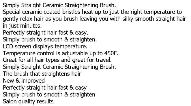 Simply Straight Ceramic Straightening Brush - Perfectly straight hair fast & easy Simply Straight Ceramic Straightening Brush - Perfectly straight hair fast & easy Simply Straight Ceramic Straightening Brush - Perfectly straight hair fast & easy Simply Straight Ceramic Straightening Brush - Perfectly straight hair fast & easy