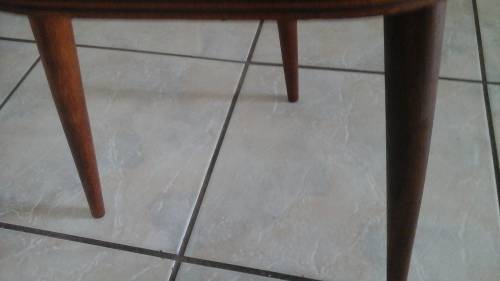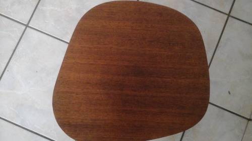 THIS GORGEOUS PIECE IS MADE FROM WOOD AND IS BROWN IN COLOR. IT IS BASICALLY SQUARE IN SHAPE AND STANDS ON THREE LEGS.