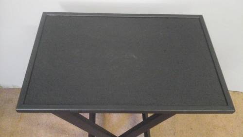 THE TABLE I MADE FROM CORK. THE TRAY AND THE LEGS ARE DARK BROWN IN COLOR.