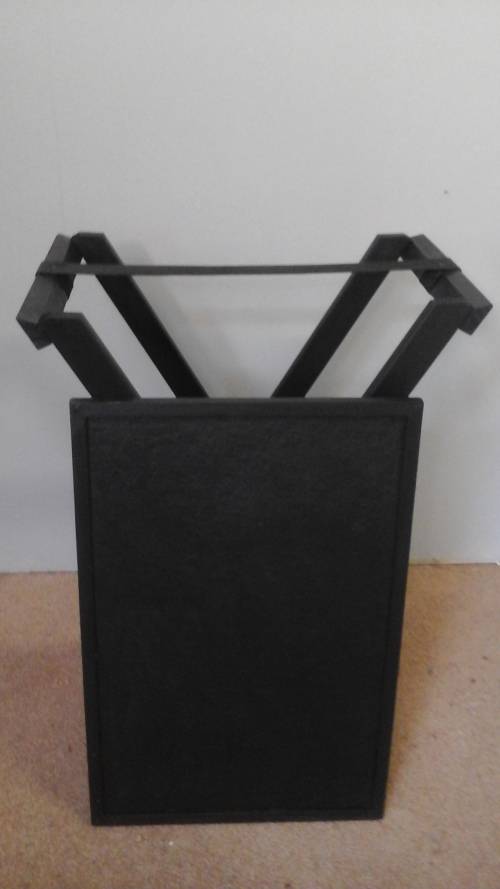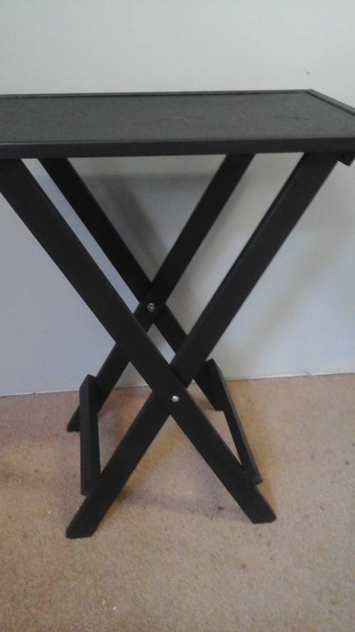 THIS GORGEOUS PIECE IS RECTANGULAR IN SHAPE. THE TABLE TOP LIFTS OFF AND THE LEGS CAN FOLD UP.