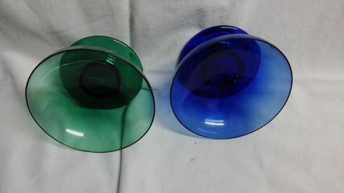 Simply stunningly exquisite fragile fine green and blue dessert bowls. 50 mm high and 100 mm in diameter. Dainty, fine and fragile.
