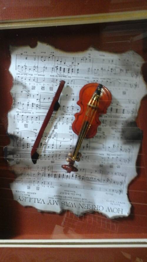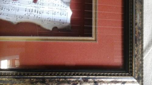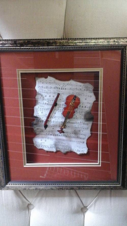 SIMPLY TERRIFIC FRAMED MUSIC SHEET AND MINIATURE VIOLIN.