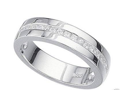 Description; Channel Set Cubic Zirconia Ring, Sterling Silver stamped 925.
