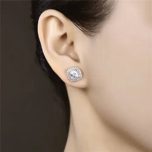 This Simulated Diamond earring pair has a superior, deluxe high class vintage style. The white gold-plated design is amazingly sparkly. It will add a smart exclusive look to your style.