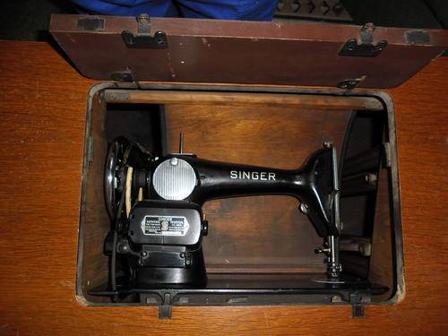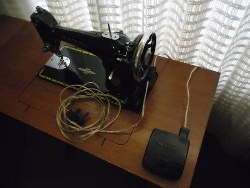 1950 Singer sewing machine with manual foot pedal and electric operation with remote foot pedal.