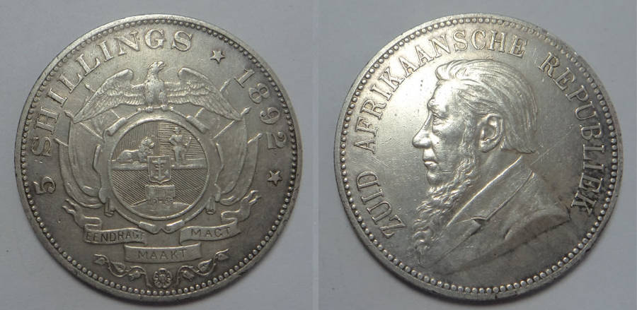 Single Shaft ZAR Crown (5-Shillings) of 1892 showing Extremely Fine Details (Hairlines)