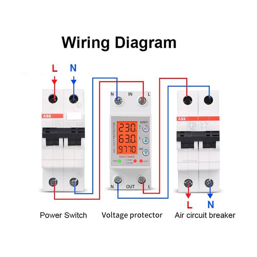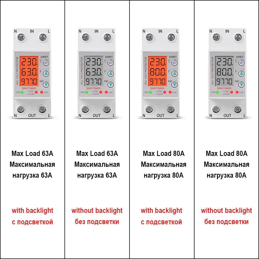SINOTIMER SVP-977 230V 63A8 0A Home Usage Adjustable Voltage and Curr... (CURRENT: 63AWITHBACKLIGHT)