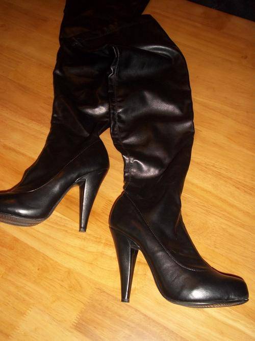 Sissy Boy Thigh High Black Boots : Size 8 *** FREE POSTAGE ***