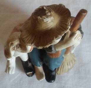 Sitting Boy With Dog Porcelain Ornament