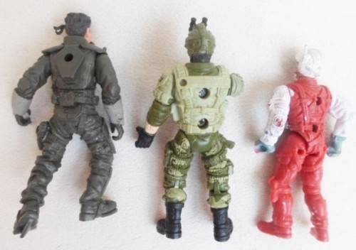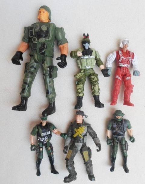 THE FIVE SMALLER ONES RANGE IN SIZE FROM 9CM TO 11CM AND THE LARGER ONE IS 15CM. THE RAMBO-LOOKING GUY IS MARKED' LANARD 2013' AND HIS HEAD AND ARMS ARE ARTICULATED BUT LEGS ARE FIXED. THE OTHERS ARE UNMARKED BUT FULLY ARTICULATED. REFER IMAGES. SHIPPING R50 (COMBINED SHIPPING PRICES AVAILABLE ON REQUEST)