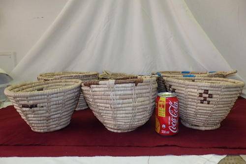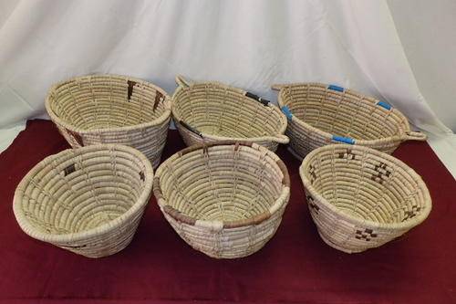 THIS COLLECTION OF SIX FABULOUS ASSORTED HANDMADE GRASS PLANTERS IN TWO DIFFERENT SIZES ARE IDEAL FOR DISPLAY OR FOR USE AND ARE IN GOOD CONDITION WITH MINIMAL AGE AND USAGE RELATED WEAR AND TEAR. THERE ARE THREE OVAL PLANTERS MEASURING 33cm LONG x 25cm WIDE x 14cm TALL AND THREE ROUND PLANTERS MEASURING 23cm ACROSS x 16cm TALL.