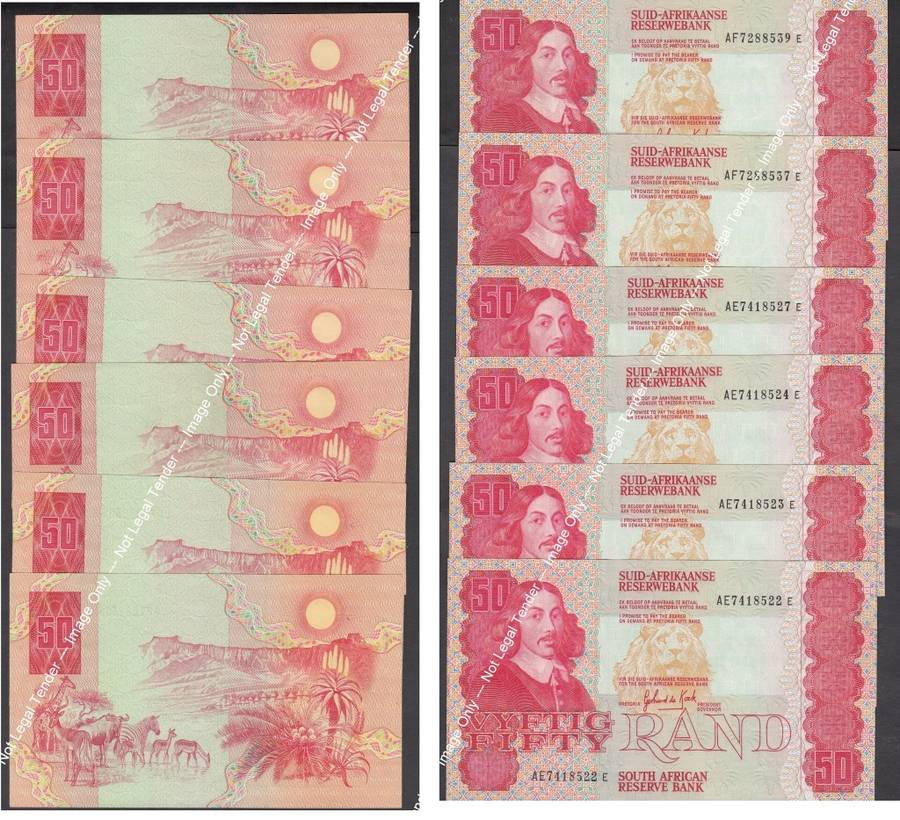 Six G. de Kock R50 notes of 1984 with close serial numbers