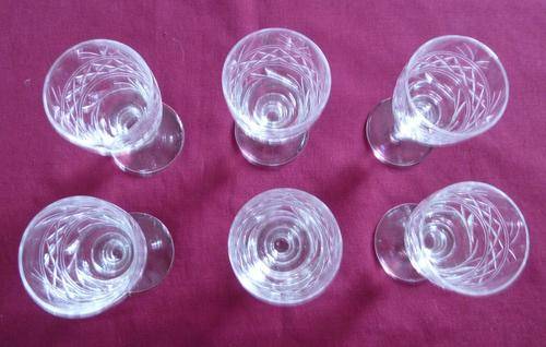 A great set of six cut crystal Stuart liquor glasses in the highly desirable imperial pattern. The glasses measure 4cm in diameter at top and stand 7cm high. They are in very good condition.
