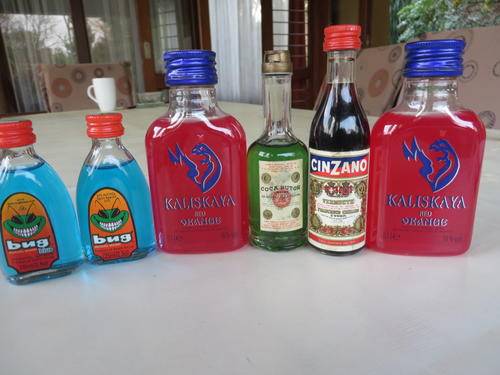 SIX VARIOUS FULL MINI GLASS BOTTLES - AS PER SCAN
