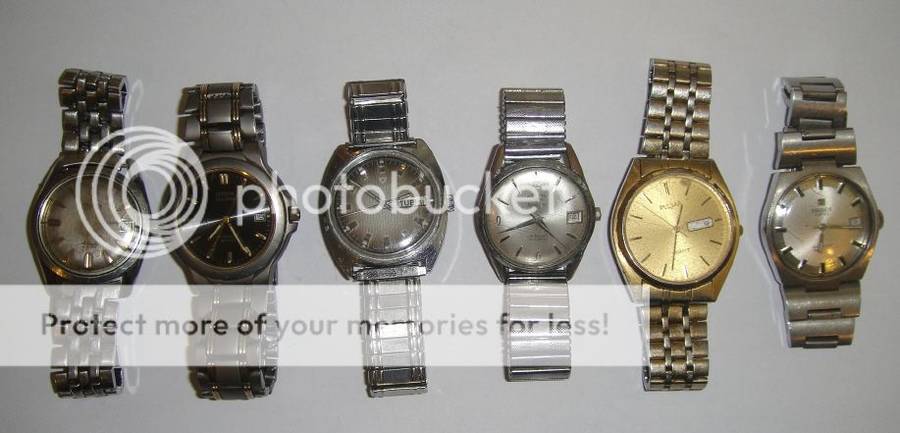 I am not an expert on watches, so although I can see that all 6 watches are in working order, I cannot guarantee that they are in excellent condition and must assume that at least some of them might need a service or adjustments. So I am listing them “Voetstoots” and if you are doubtful, rather be conservative with your bids.