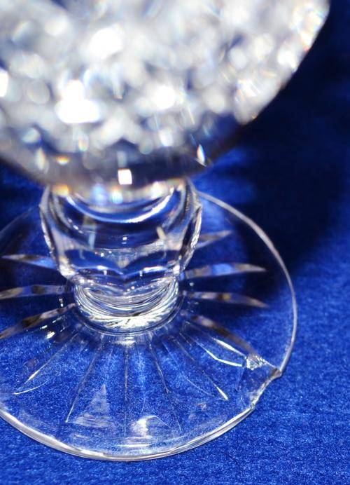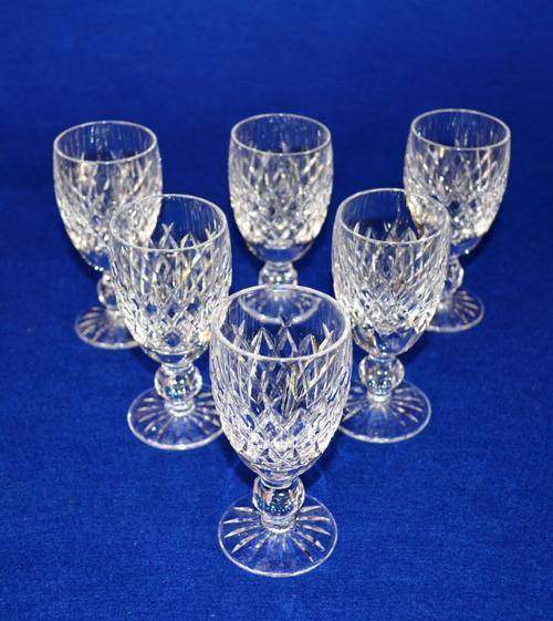 A stunning set of six sherry glasses with criss cross pattern