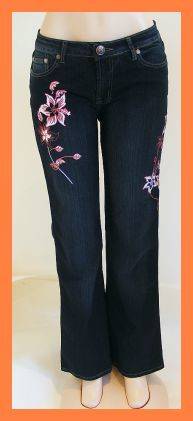 SIZE: 10 - BLACK MAUI GIRL STRETCH JEANS WITH FLOWERS