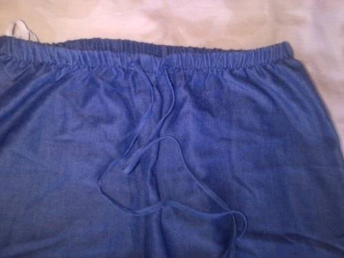 Size 32 blue long skirt with slits on both sides at the bottom - the inside of the skirt is full of little "ruffles'' - where the material makes small little bums which can be removed if you have that lint removal little machine which i don't have unfortunately.