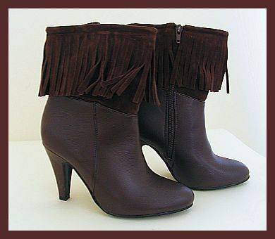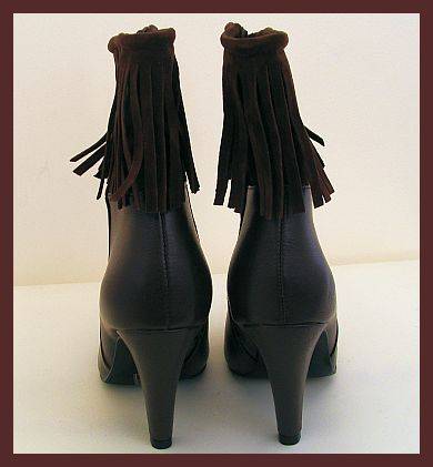 SIZE: 4 - CHOC BROWN FRINGED ANKLE BOOTS