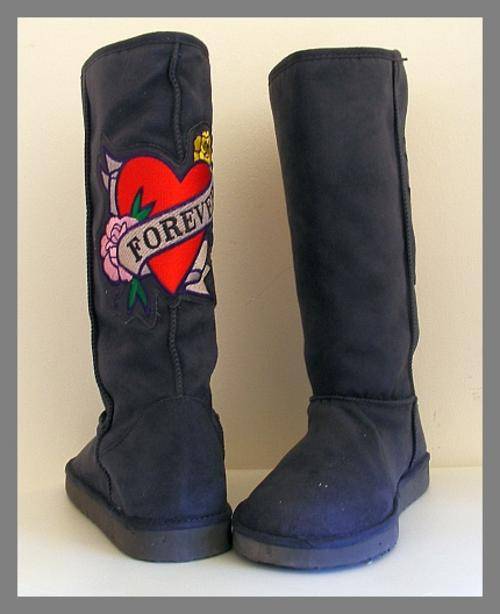 SIZE: 5 - GREY "LOVE FOREVER" FULLY FUR LINED BOOTS FROM ZOOM
