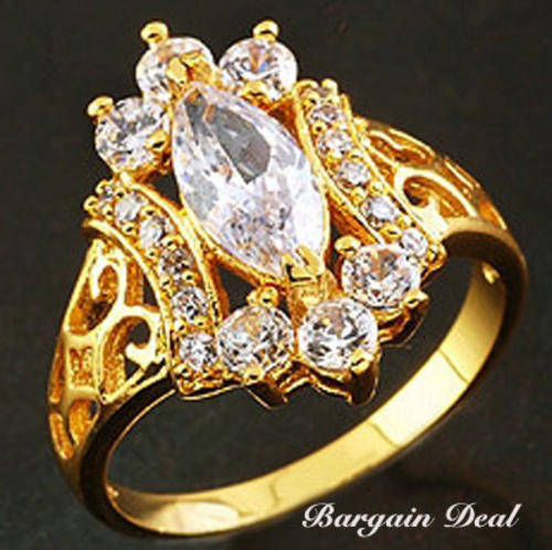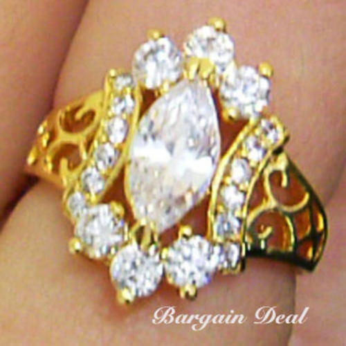 Size 6/7/8!!19stone 3ct Marquise Cut Vintage Style Engagement Ring clad in 18K Yellow Gold !!