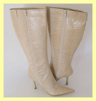 SIZE :6 - SEXY CREAM FAUX SNAKE FULL LENGTH BOOTS BY PLUM