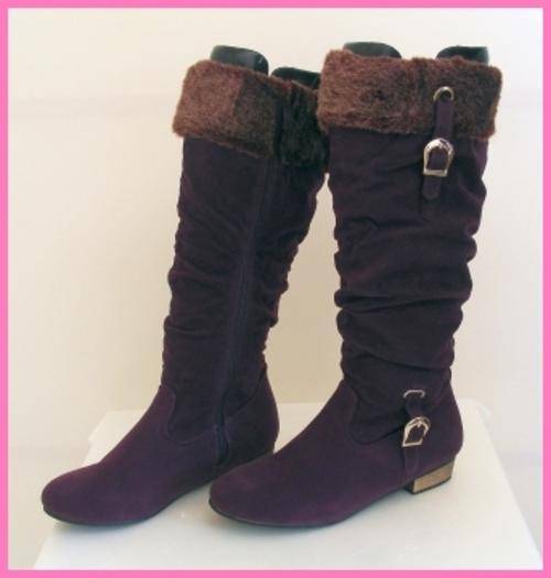 SIZE: 7 - DARK PURPLE FUR TRIMMED BOOTS