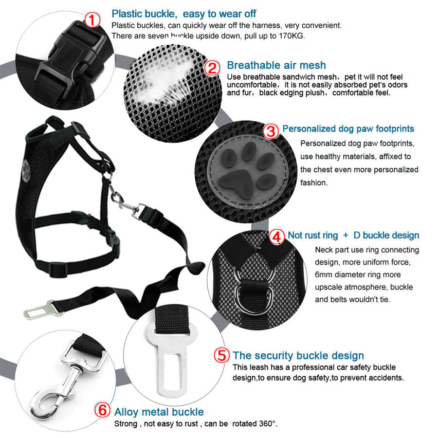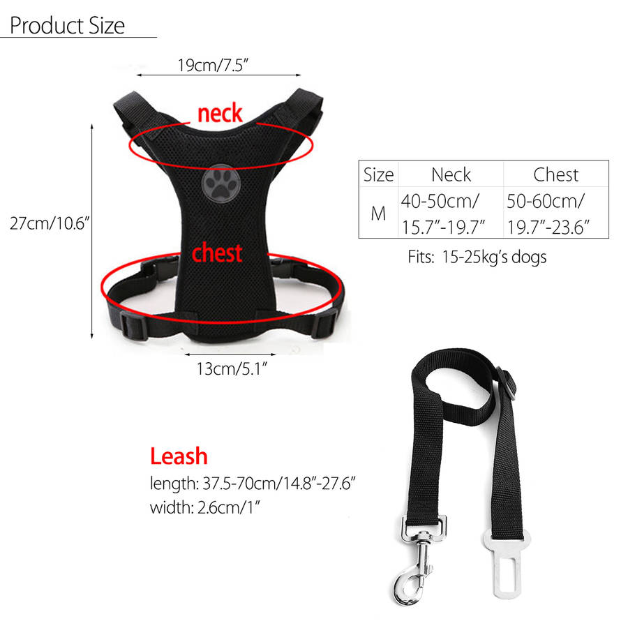Size M Air Mesh Dog Car Seat Belt Adjustable Harness with Clip Lead Pet Travel