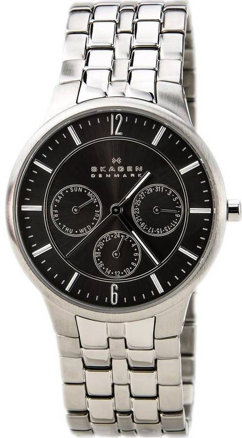 SKAGEN DENMARK STAINLESS STEEL GUNMETAL DIAL MULTIFUNCTION MENS WATCH
