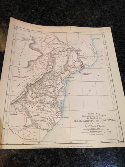 Sketch map illustrating the discovery of the Limpopo river mouth by St Vincent Erskine
