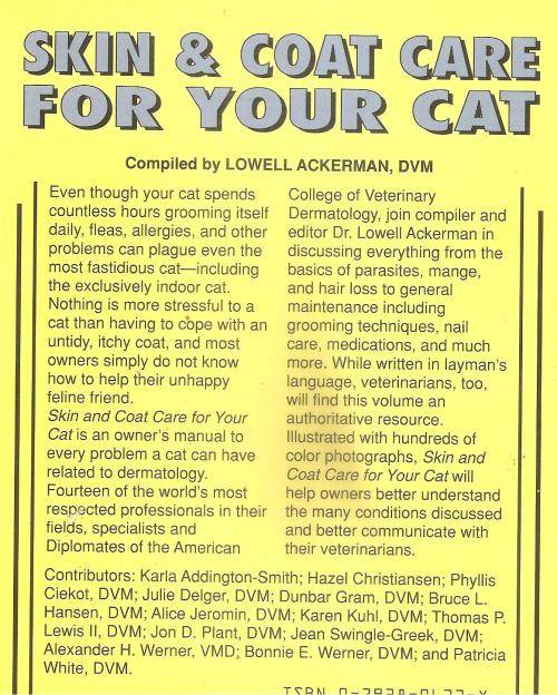 Skin and Coat Care for Your Cat By: Lowell Ackerman DVM