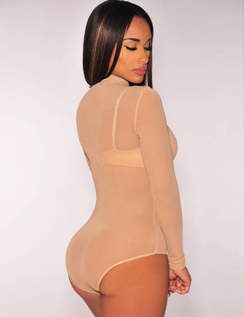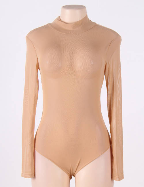 Skin Color High Collar Transparent Teddy  ONE SIZE