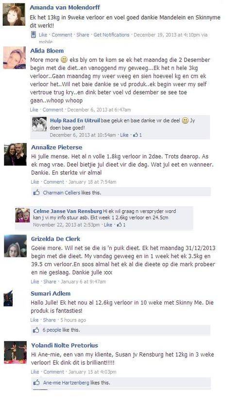 Ek het 13kg in 9weke verloor en voel goed dankie Skinnyme dit werk!!.