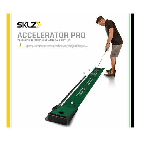 The SKLZ Accelerator Pro is an indoor putting green where you can practice your golf game anywhere, anytime. Featuring a true-roll surface similar to actual greens and an up-slope at the cup, youll be able to improve your putting accuracy and distance from the comfort of your home or office.