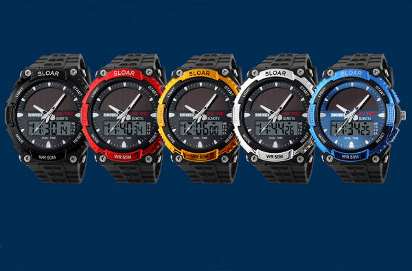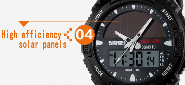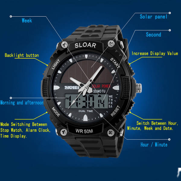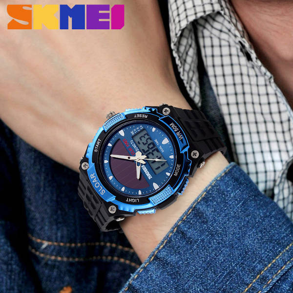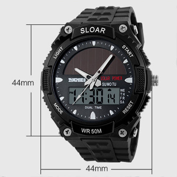 SKMEI 1049 Solar Power Dual Time Waterproof LED Analog Digital Watch
