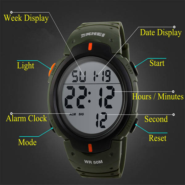 SKMEI 1068 Unisex LED Digital Alarm Waterproof Military Sport Watch