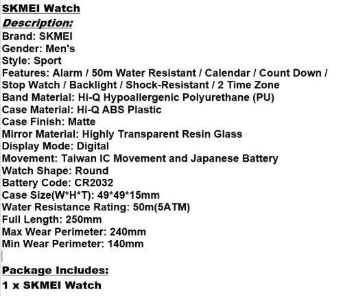 SKMEI (BLACK) Men's Multifunction Sport Watch Date Week Digital Wristwatch