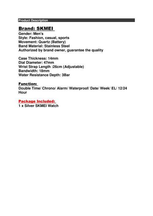 SKMEI Men Fashion Sport Dual Display Analog & Digital Stainless Steel Watch (SILVER)