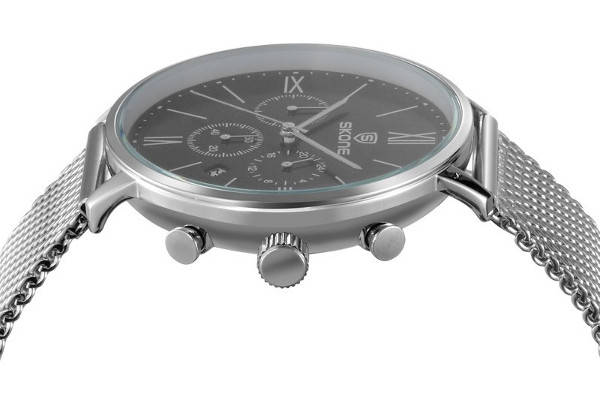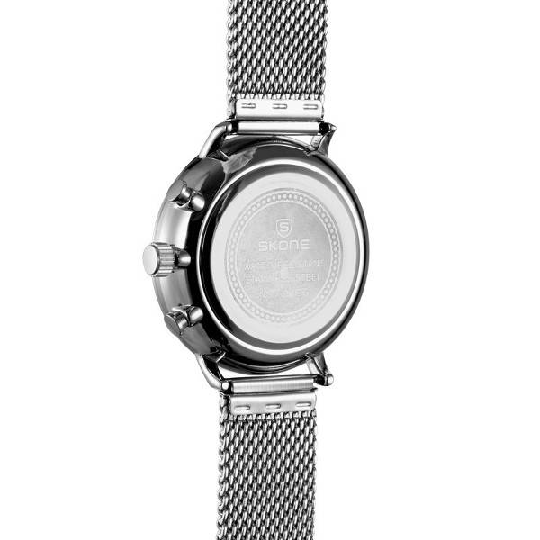 SKONE 7391EG Stainless Steel Mesh Band 24 Hours Chronograph Analog Quartz Watch