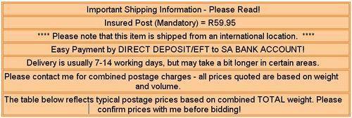 Postage Rates to South Africa - more than 1 item - insurance mandatory
