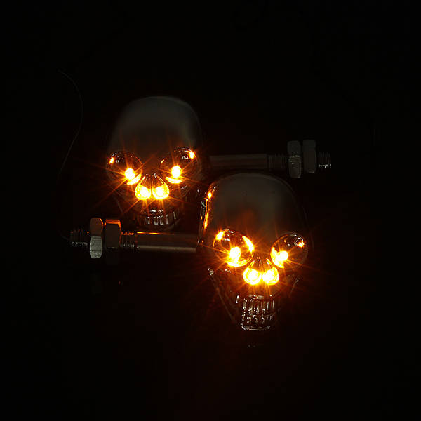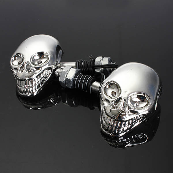 2 X Chrome Skull Turn Signal Lights
