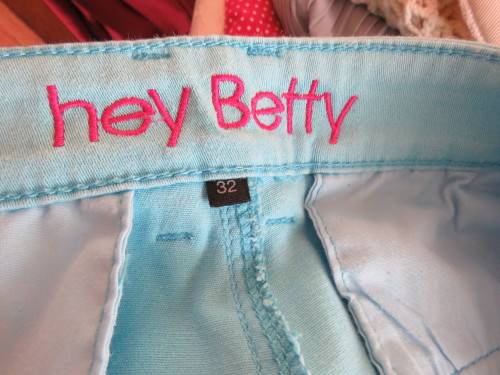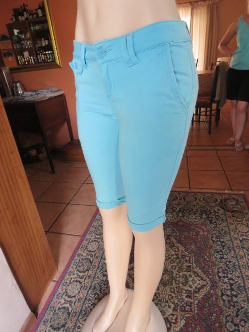 Skyblue long shorts by HEY BETTY side and back pockets.Size 32/8.Good condition