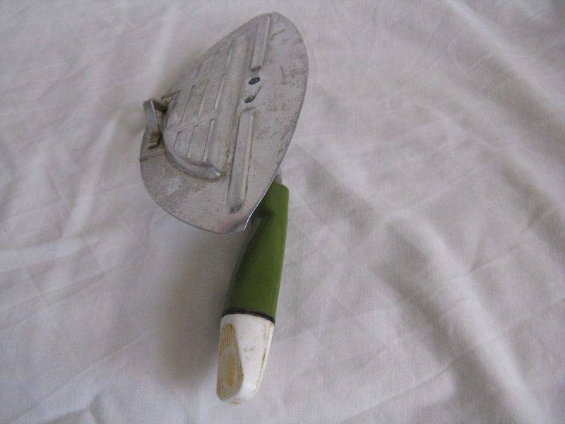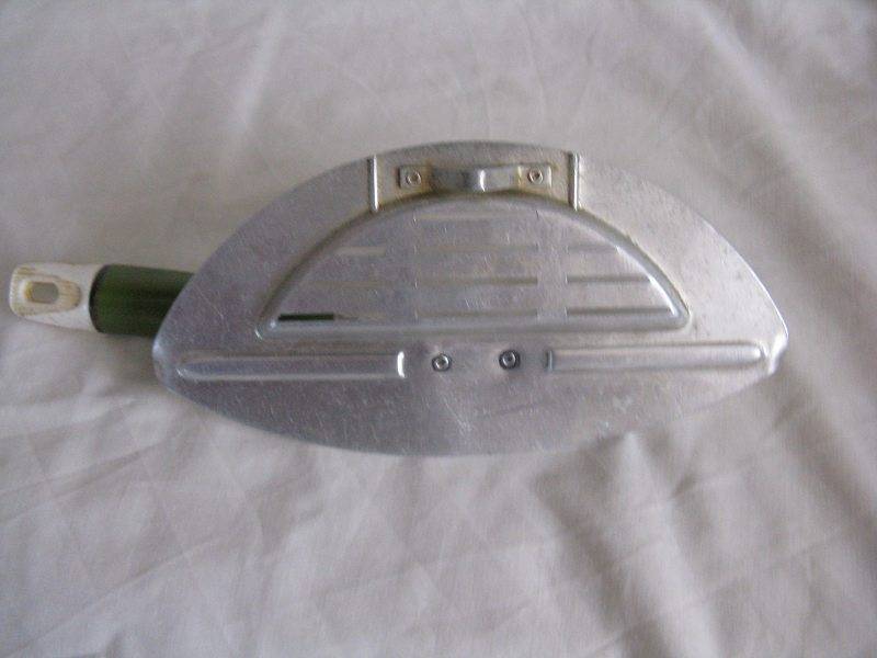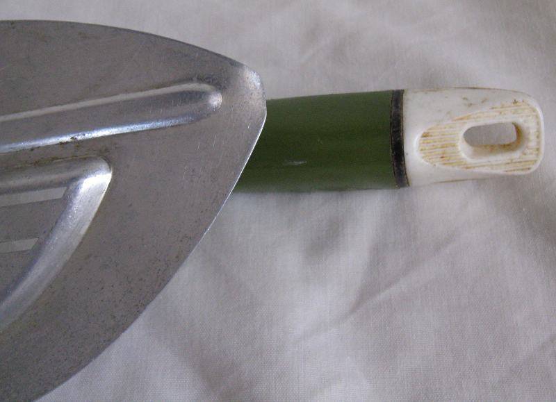 SKYLINE ENGLAND UNUSUAL UTENSIL. PLEASE NOTE WOBBLE BETWEEN HANDLE & CONNECTING SURFACE. L 28cm.