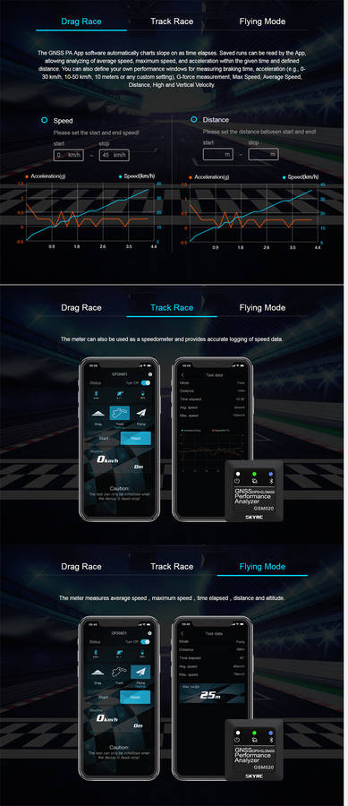 This gadget is ideal for RC racing/flying and casual biking, driving and long journey. The user is able to easily get insights of the Acceleration, G-force, Speed, Time, Distance, High and Vertical Speed. So this is the perfect tool to become a top driver or pilot!